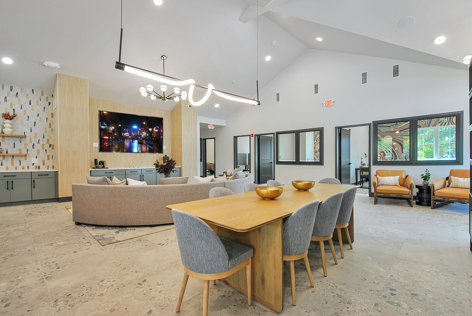 Outside, the new outdoor kitchen and grilling area, hammock park, dog park, and freshly updated pool deck give residents a genuine outdoor retreat. Inside the clubhouse, a remodeled lounge, demonstration kitchen, business center, and co-working spaces round out a community that's been rebuilt from the ground up.